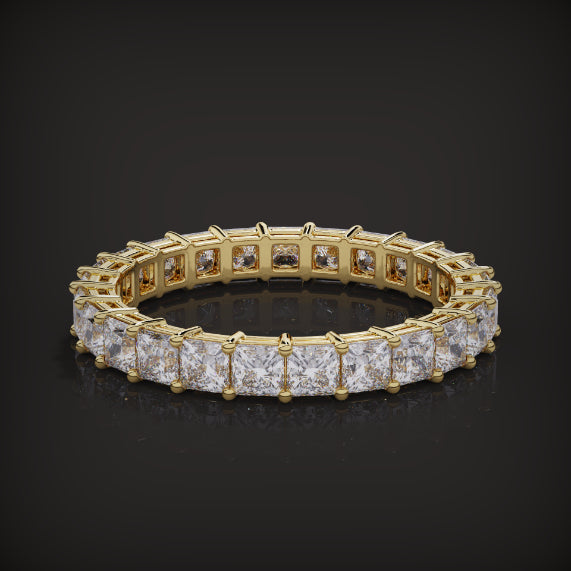 The Ariana Band uses a unique setting encapsulating the stunning princess cut stones made famous with the Ariana bridal set. An absolute show-stopping ring worthy of any celebrity.