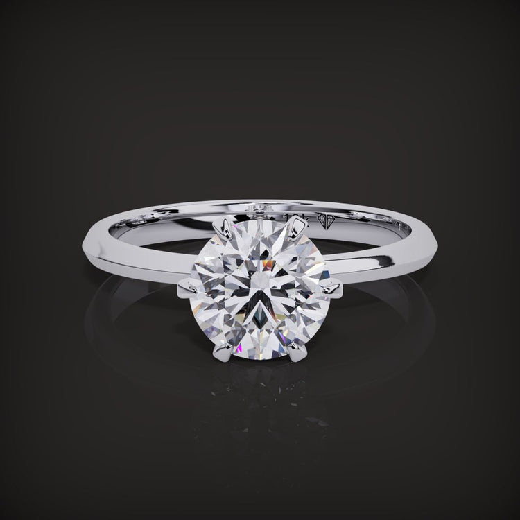 A classic icon of engagement jewellery The Marion Ring is a round brilliant cut diamond ring, crafted in the original aesthetic of the Tiffany style 6-prong setting. It's the most popular ring design of all time.