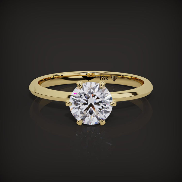A classic icon of engagement jewellery The Marion Ring is a round brilliant cut diamond ring, crafted in the original aesthetic of the Tiffany style 6-prong setting. It's the most popular ring design of all time.